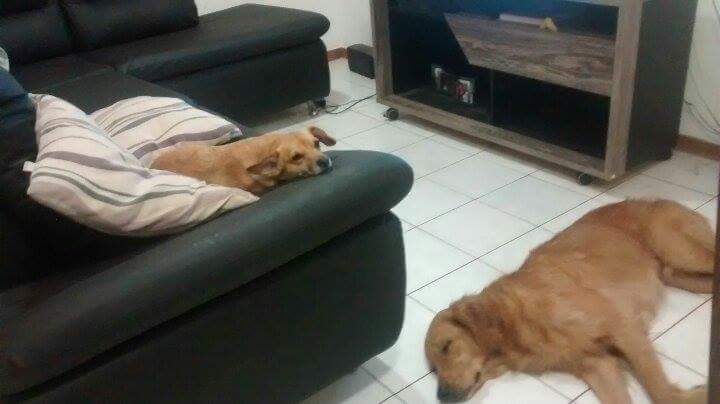 Passei um café, requentei um pão dormido, coloquei ração para o Elvis e a Bibi que ainda estavam sonolentos, continuaram no sofá assistindo o Bom Dia Brasil.
