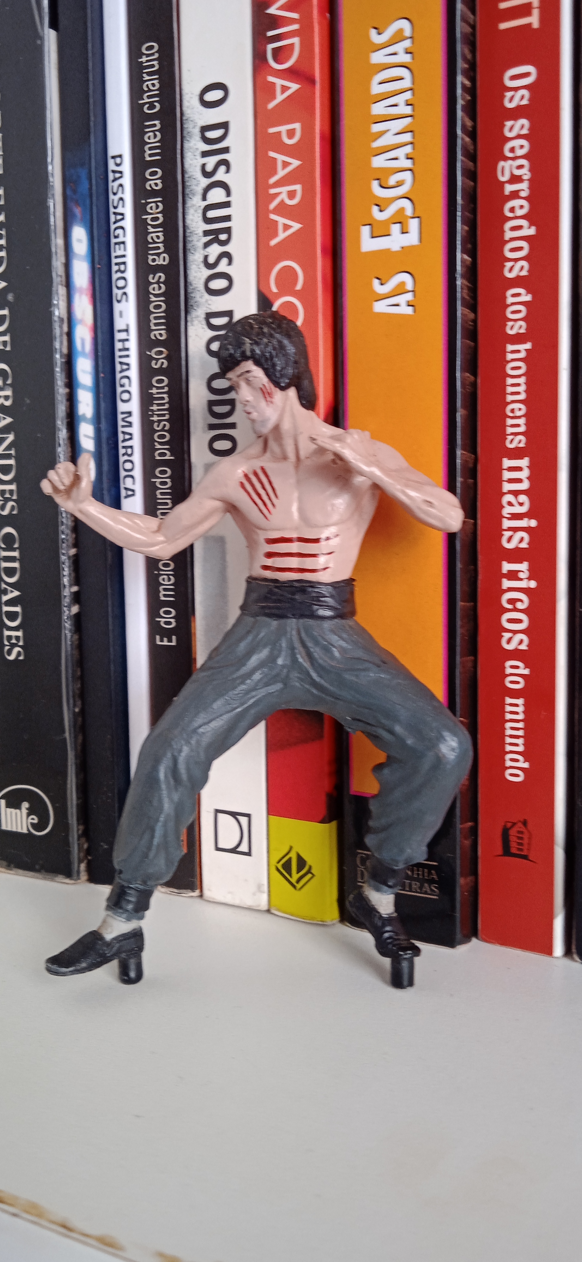 Ele rasgava a camisa e surra comia nos canalhas que atravessavam seu caminho, quando eles conseguiam machuca-lo, o ódio do Bruce Lee aumentava, ele lambia sangue no dedo e sentava a porrada com o polegar para cima, fazia sinal de jóia, mas a cara sempre de enfezado. Finalizava sempre com um beijo em uma gata passeando com um carro sem teto na avenida beira-mar, subiam os créditos na tela e o coração ainda estava a mil por hora com aquele longa-metragem de ação.